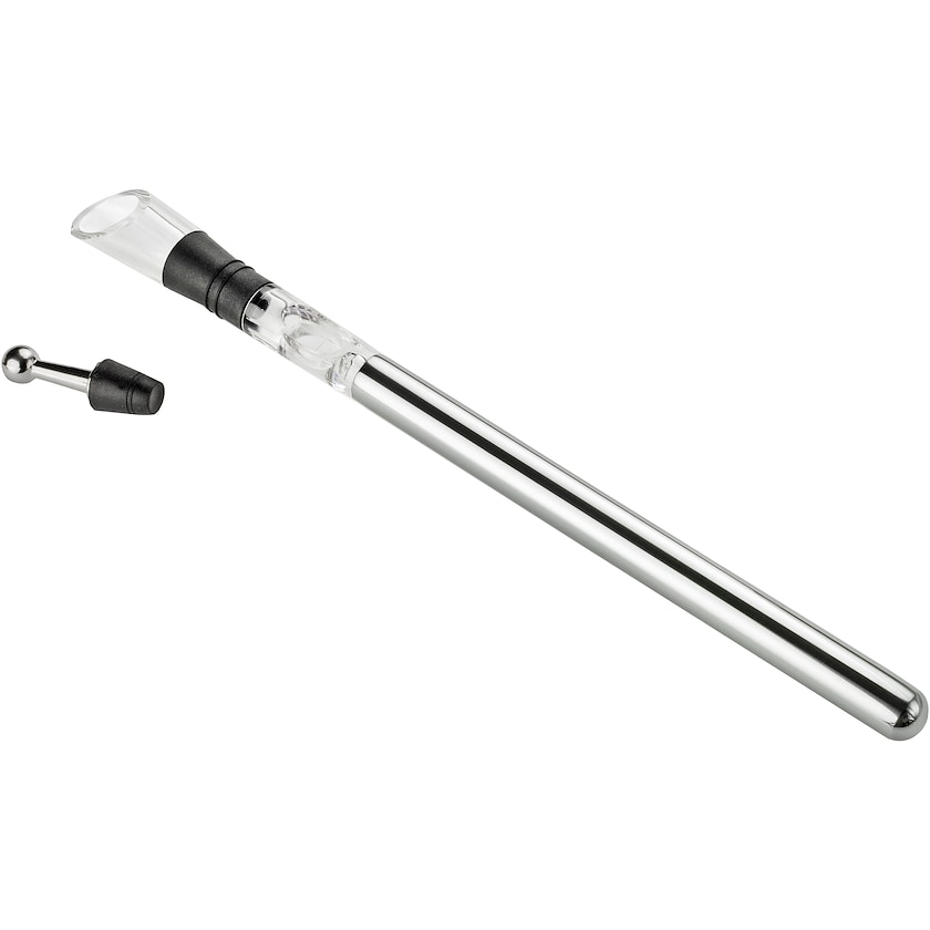 Exklusives Set mit Tropfring und Kühlstab. Der Kühlstab kommt in die Flasche und hält den Wein auf der richtigen Temperatur. Der Tropfring verschließt die Flasche, so dass die Aromen erhalten bleiben. Das ganze Set wird in einer eleganten schwarzen Geschenkschachtel geliefert. Der Druck erfolgt auf der Geschenkschachtel.