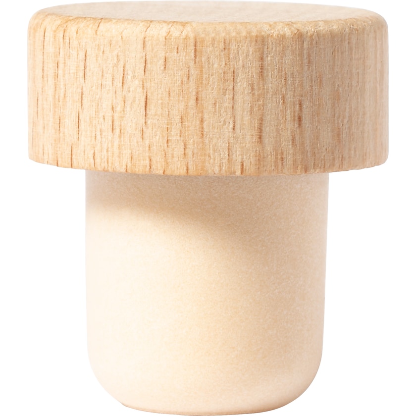 Weinkorken aus Holz. Die Kennzeichnung kann wahlweise mit einem 1-farbigem Druck oder Lasergravur erfolgen.