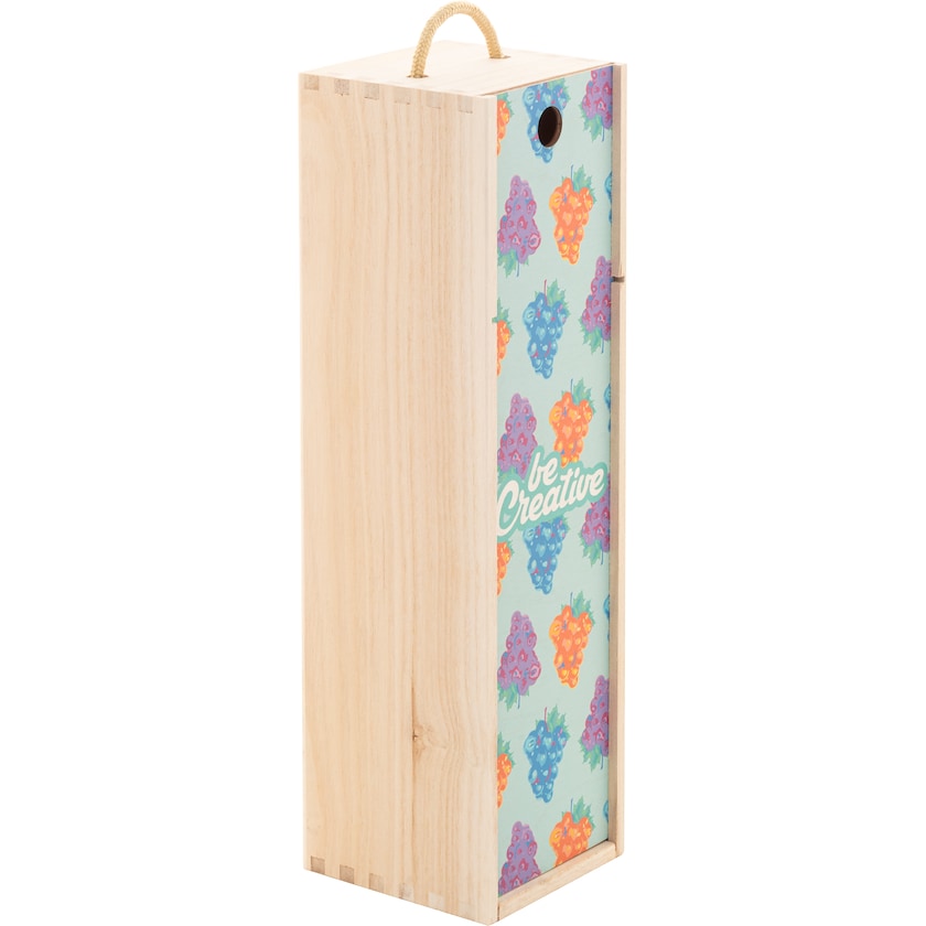 Weinkiste aus Holz mit digitalbedrucktem Deckel. Die Mindestabnahme beträgt 50 Stück.