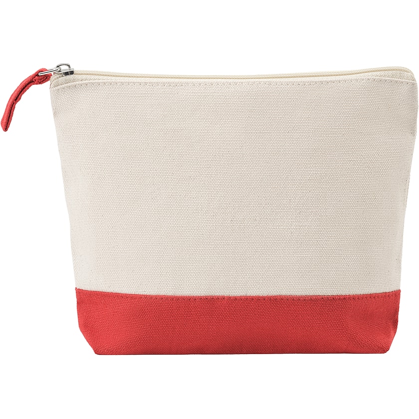 Kulturbeutel aus zweifarbigem Baumwollstoff. Gefertigt aus strapazierfähiger, 340 g/m² schwerer Baumwolle (100 % Baumwolle).