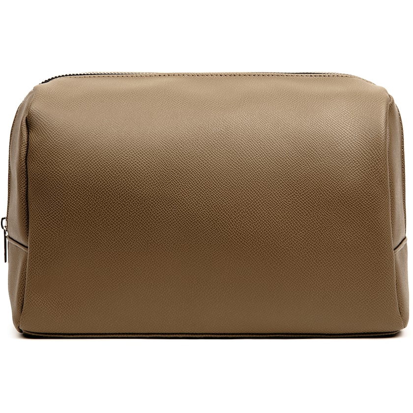 Zeitlos gestaltete Kulturtasche. Das Äußere besteht aus recyceltem Kunstleder. Der lange Reißverschluss ermöglicht einen einfachen Zugriff auf den Inhalt.