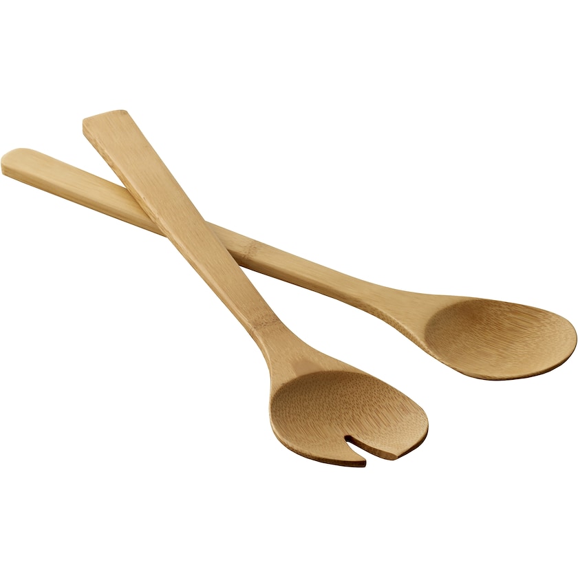 Hübsches Set mit 2 x Salatbesteck aus Bambus. Ein nützliches Geschenk, das sich in jeder Küche gut macht! Der Druckpreis bezieht sich auf ein Besteckteil.