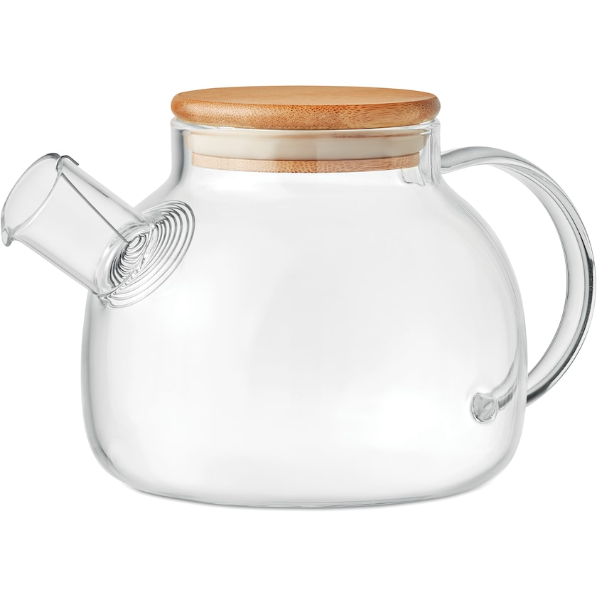 Wunderschön gestaltete Teekanne aus Glas mit Bambusdeckel. Das Glas ist vom Typ Borosilikat, was bedeutet, dass es feuerfest und sehr langlebig ist. Der Druck kann maximal zweifarbig erfolgen.