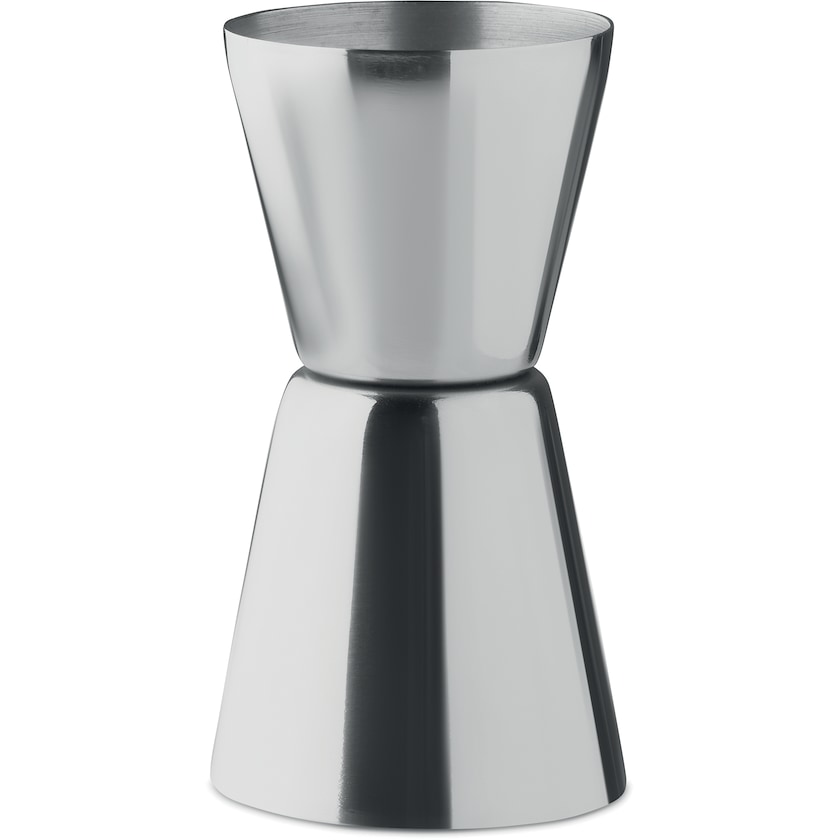 Getränkemaß aus rostfreiem Stahl. Das Getränkemaß hat ein Volumen von 25 und 40 ml. Die Beschriftung erfolgt durch Lasergravur.
