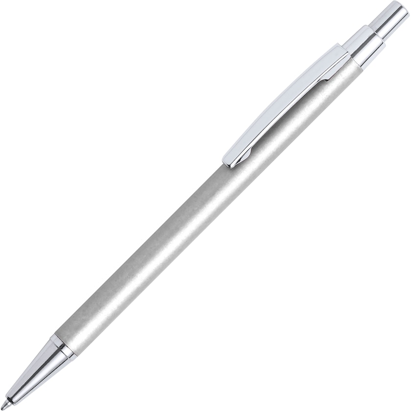 Umweltfreundlicher Kugelschreiber aus recyceltem Aluminium. Der Kugelschreiber hat elegante Chromdetails. Auf dem Stift befindet sich ein Symbol, das darauf hinweist, dass der Stift aus recyceltem Aluminium besteht.
