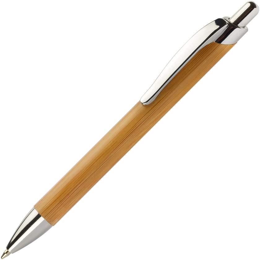 Eleganter Kugelschreiber aus Bambus. Das Model Pure hat elegante Details aus Metall. Das Logo wird aufgedruckt.