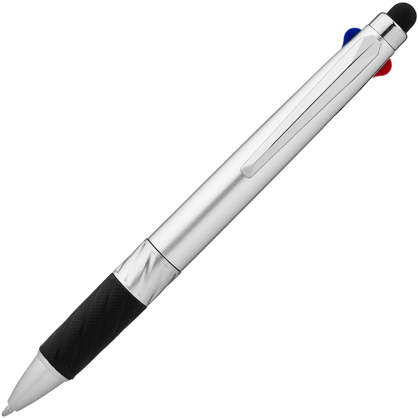 Multifunktionskugelschreiber mit mehreren Tintenfarben und Touchfunktion. Brandon hat einen bequemen Griff, die Tinte ist in schwarz, blau und rot.
