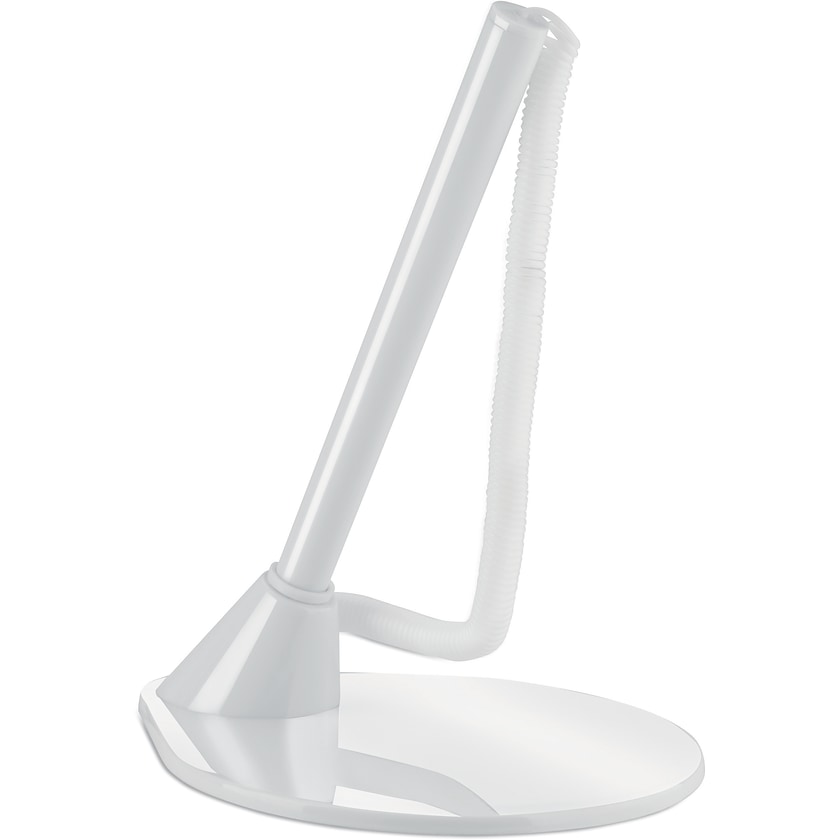 Preiswerter Kugelschreiber im Stifthalter. Der Stift ist mit einem elastischem Kabel versehen, welches am Stifthalter befestigt ist.