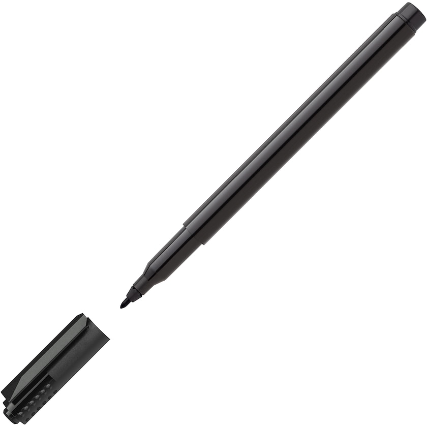 Schmalen Markierungsstift bedrucken. Ermöglicht dauerhafte Markierungen. 90 % des Kunststoffs des Stifts sind recycelt. Die Strichstärke beträgt 1-1,5 mm.