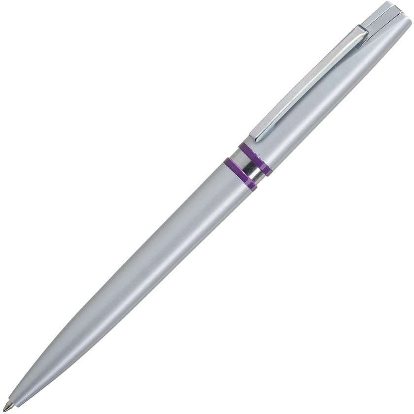 Eleganter Kugelschreiber mit silberfarbenem Stiftkörper und bequemem Griff.