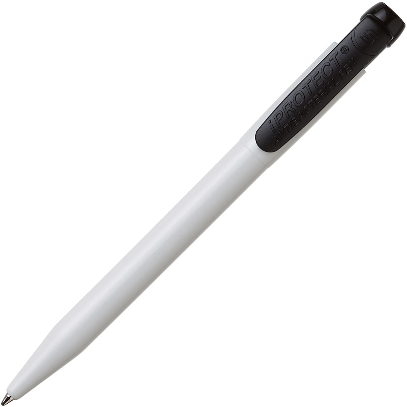 Einzigartiger antibakterieller Kugelschreiber von Stilolinea. iProtect verwendet einen natürlichen Wirkstoff aus Zinkionen, um Bakterien zu neutralisieren. Der Stift hilft, die Ausbreitung von Infektionen zwischen Menschen zu stoppen, und eignet sich daher besonders für das Gesundheitswesen, die Schule und die Pflegeberufe. Es ist auch perfekt für Hotels, Restaurants und Geschäfte. Es ist wichtig zu beachten, dass der Stift die Ausbreitung von Bakterien verhindert und nicht von Viren.