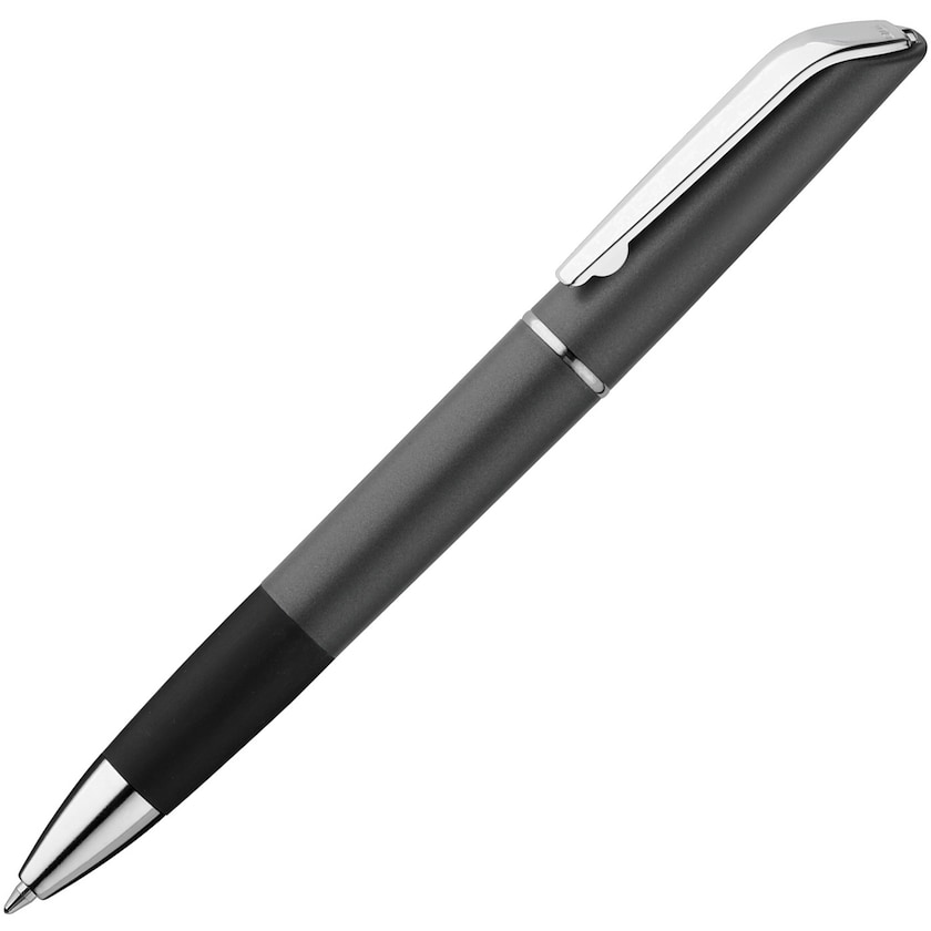 Metallicfarbener Kugelschreiber mit Griff und vielen Details aus Chrom.