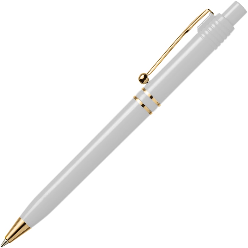 Stift mit Goldchrom und einem schönen, ausgefallenen Clip. Die Tinte ist gemäß ISO 12757-2 dokumentiert. Der Stift wird in Europa hergestellt.