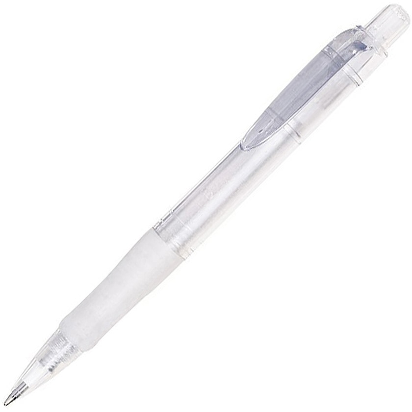 Preiswerter Stift in transparenten Farben mit bequemem Gummigriff.