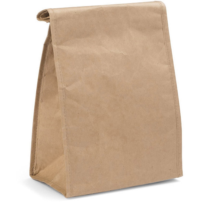 Trendige Kühltasche für ihr Mittagessen. Die Kühltasche mit einem Klettverschluss verschlossen.