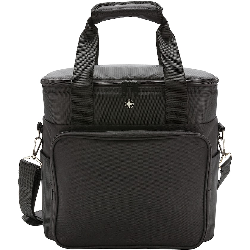 Exklusive Kühltasche bedrucken von Swiss Peak. Die Kühltasche hat ein extragroßes Hauptfach mit Platz für bis zu 20 33cl Dosen. Die Tragegriffe sind verstärkt un der Schulterriemen ist verstellbar und abnehmbar.