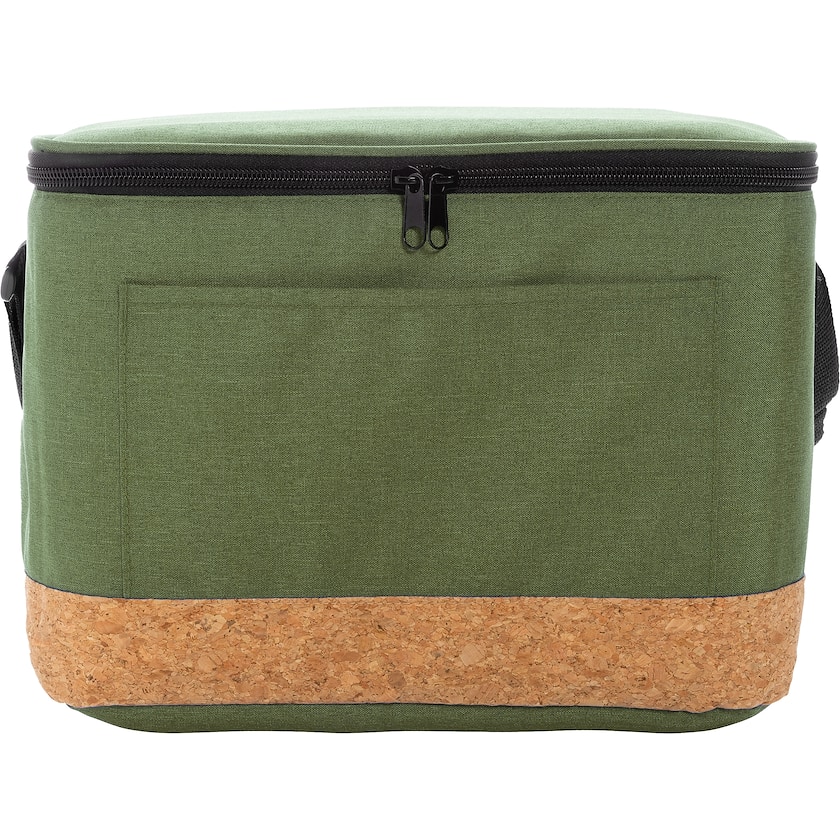 Umweltfreundliche Kühltasche mit Details aus echtem Kork. Die Tasche fasst bis zu 12 Dosen. Der Stoff besteht zu 50% aus rPET, also recyceltem Polyester.