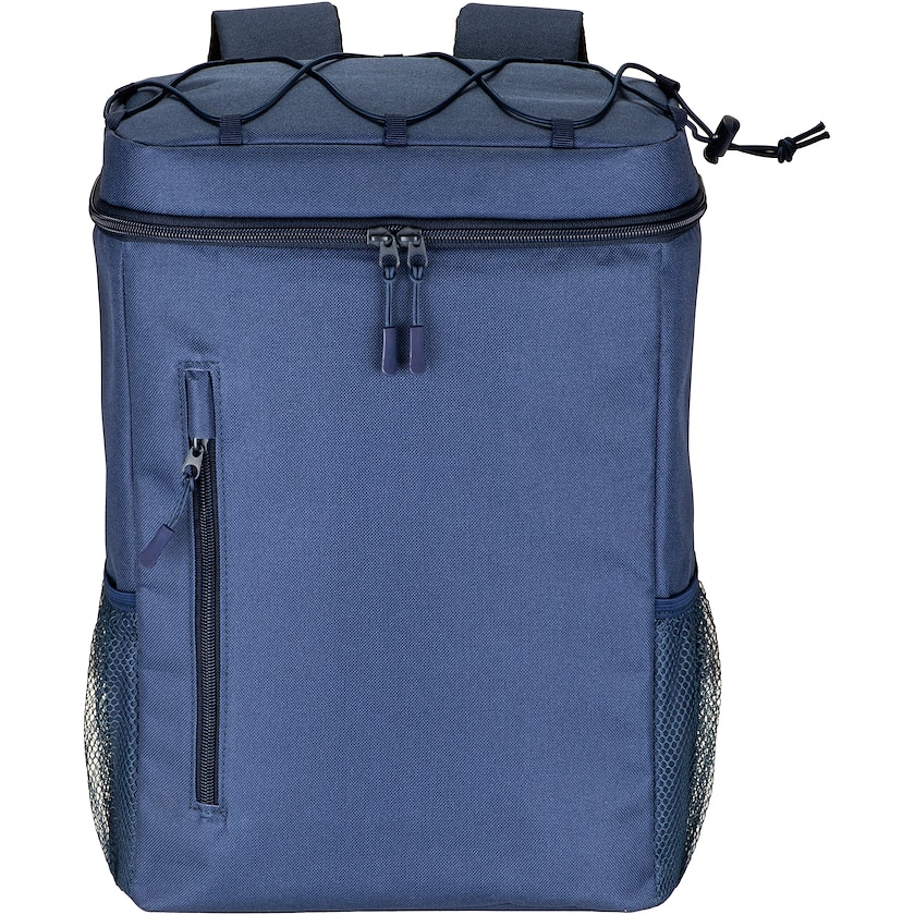 Geräumiger Kühlrucksack zu einem attraktiven Preis. Vorne befindet sich eine Reißverschlusstasche und an den Seiten befinden sich Netztaschen. Die Rückseite und die Schultergurte sind gepolstert und atmungsaktiv. Auf den Schultergurten befinden sich Reflexstreifen. Es ist nur ein 1-Farben-Druck möglich.