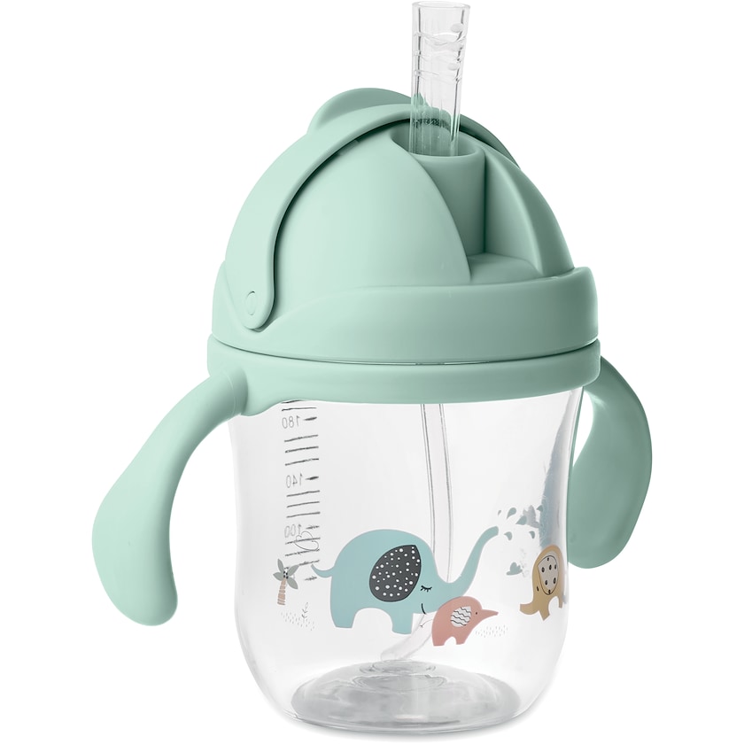 Babybecher bedrucken. Der Becher verfügt über einen praktischen Deckel mit aufklappbarem Strohhalm. Hergestellt aus Tritan.