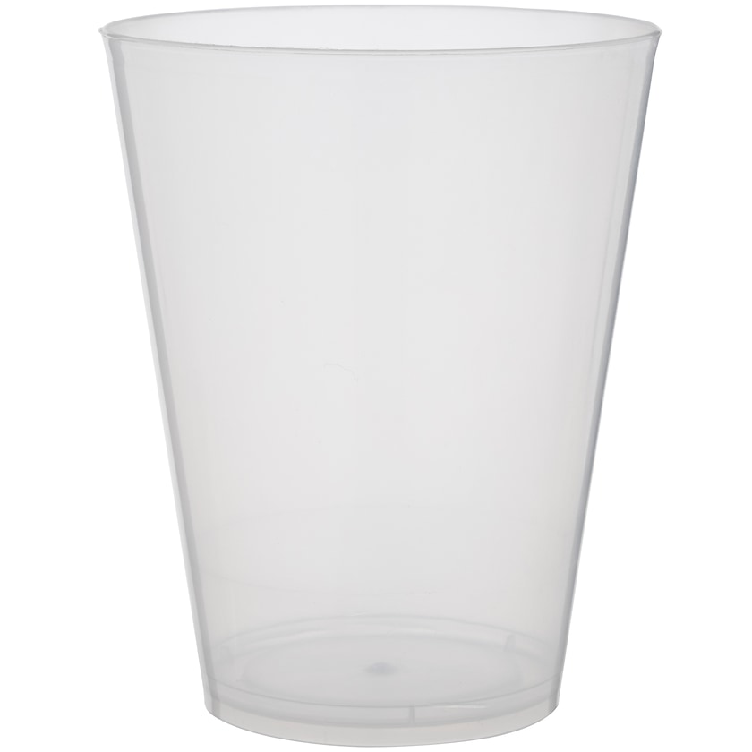 Wiederverwendbares Kunststoffglas in mehreren Farben erhältlich. Das Kunststoffglas fasst 45 cl Getränk.