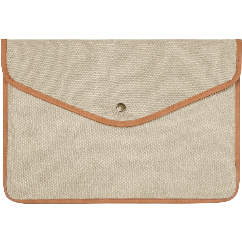 Laptoptasche aus recyceltem Baumwollcanvas und Kunstleder. Gepolstert, um den Laptop zusätzlich zu schützen. Geeignet für die meisten Laptops bis zu einer Größe von 16 Zoll.