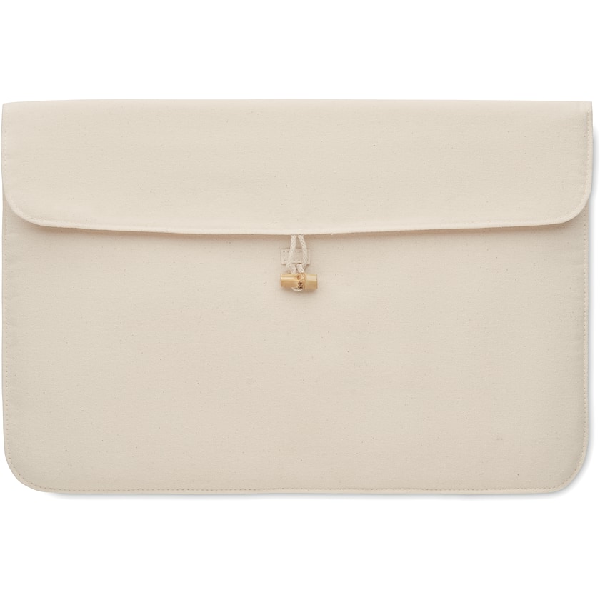 Gepolsterte Laptophülle mit schönem Baumwollstoff. Hat Platz für einen 15 Zoll-Laptop. Die Laptophülle wird mit einem Bambusknof geschlossen.