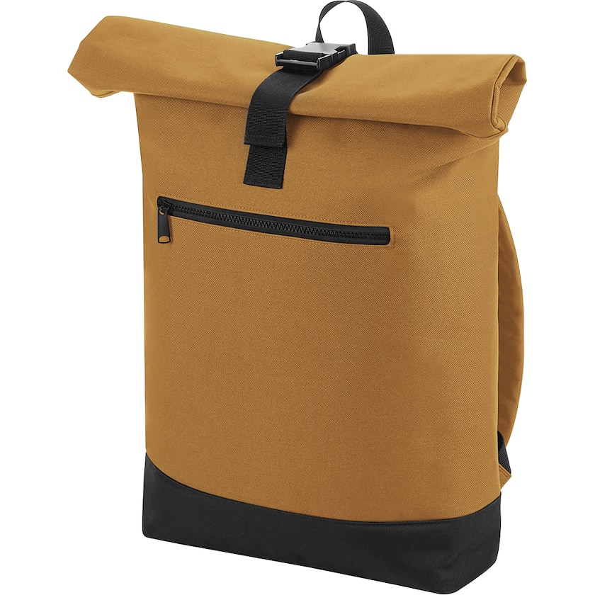 Einzigartig designter Laptoprucksack mit Rollverschluss. Rücken und Schulterriemen sind für mehr Tragekomfort gepolstert. Der Rucksack hat ein gepolstertes Fach, dass Platz für die meisten 15,6" Laptops bietet. Vorne befindet sich eine Fronttasche mit Reißverschluss. Der Rucksack hat drei verschiedenen Druckflächen zwischen denen Sie wählen können: Unten kann er 1-farbig in silber bedruckt werden (22 cm breit x 10 cm hoch) und zwei oben, die im 4-Farbdruck (12 cm breit x 4 cm hoch) bedruckt werden kann.