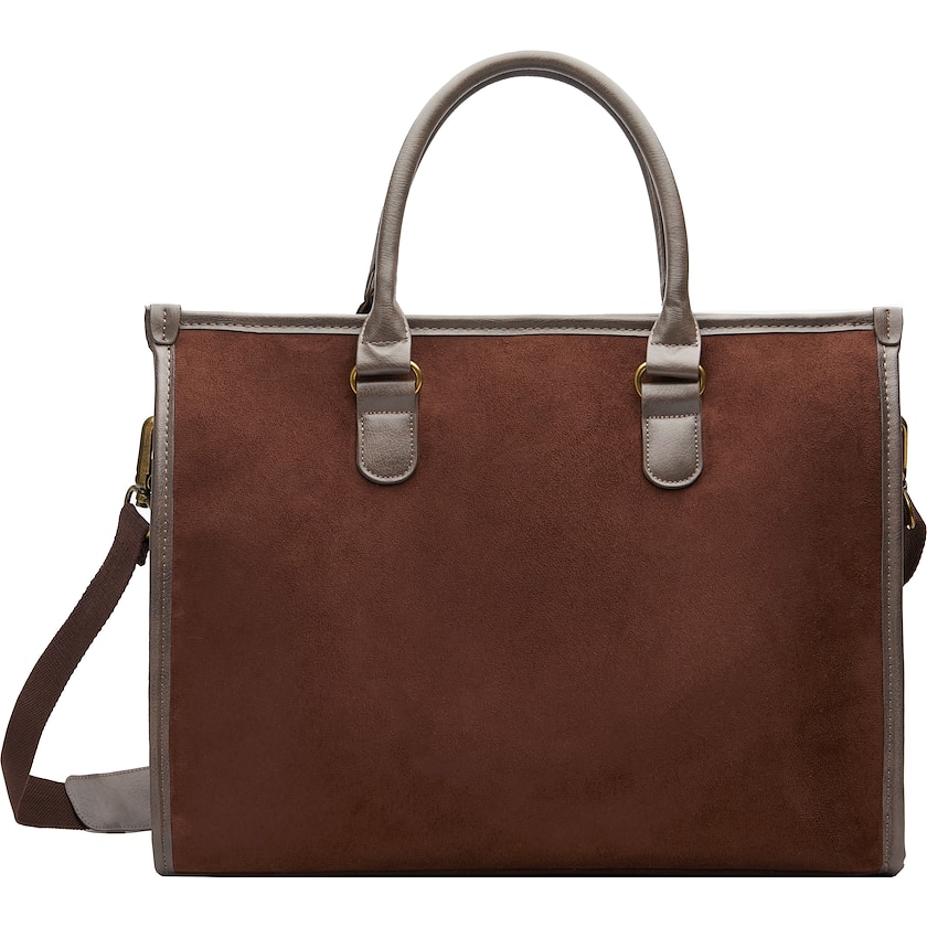 Exklusive Computertasche aus veganem Leder. Im Inneren befindet sich ein gepolstertes Fach für einen 15 Zoll Laptop. Die Tasche hat schöne Metalldetails in Messingoptik. Der Schultergurt ist verstellbar.