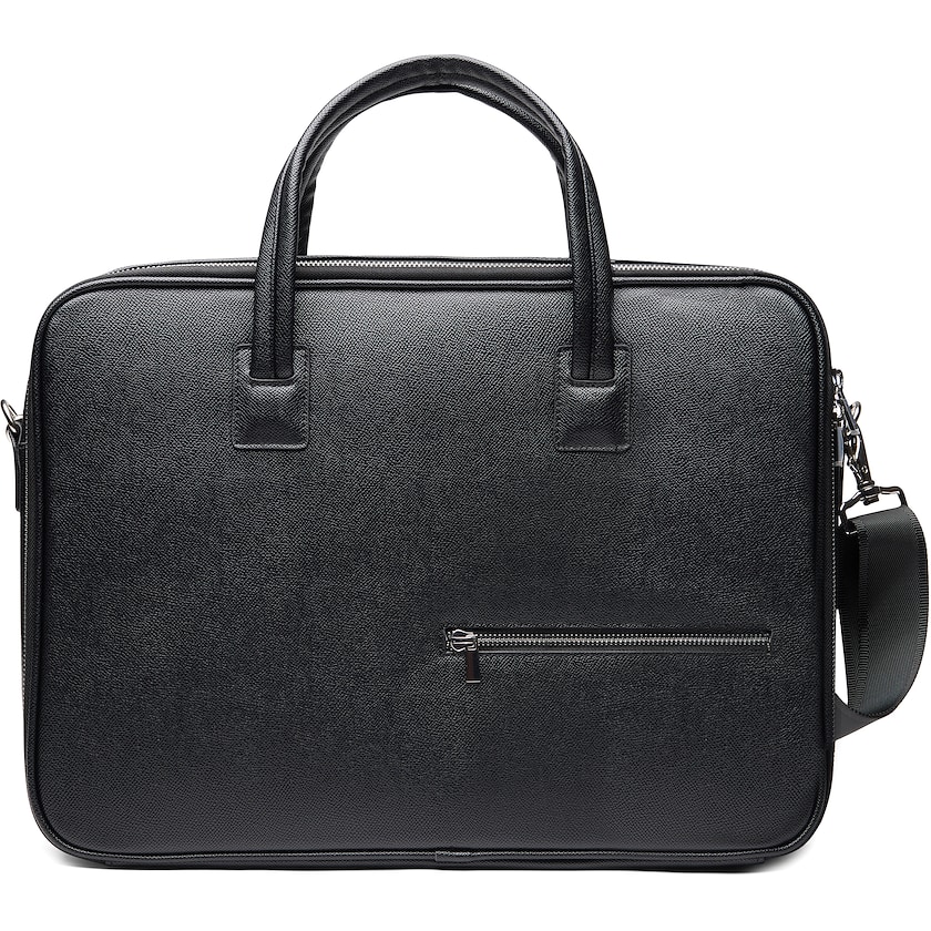 Stilvolle Laptoptasche aus hochwertigem Kunstleder. Auf der Vorderseite befindet sich eine Reißverschlusstasche und auf der Rückseite ein Trolleyband zur Befestigung an Koffern. Die Tasche verfügt auch über einen abnehmbaren Schultergurt. Hergestellt aus 36 % recyceltem Polyester und 64 % normalem Polyester.
