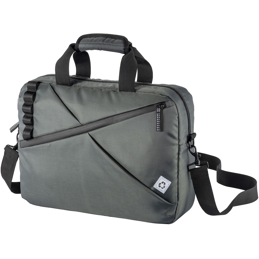 Computertasche aus recyceltem Material. Im Inneren befindet sich ein wattiertes Fach für einen Laptop bis Größe 17 Zoll. Die Tasche besteht aus rPET, alos aus recycelten PET-Flaschen. Der Schultergurt ist verstellbar und abnehmbar. Nur 1-Farbdruck möglich.