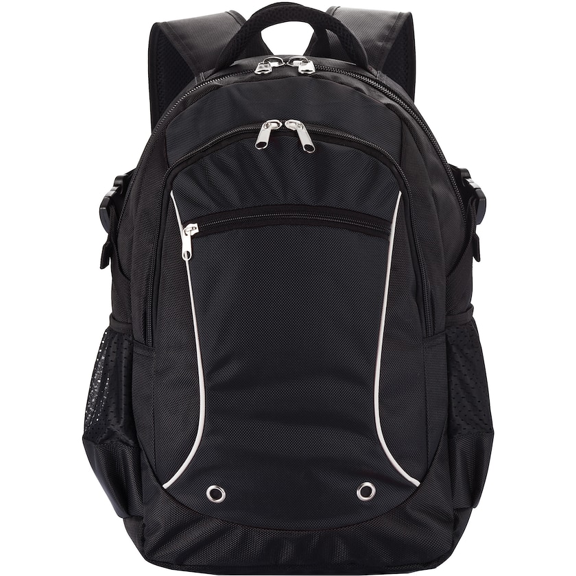 Robuster Laptoprucksack mit Platz für 15,4 Zoll Laptop. Der Rucksack hat mehrere Fächer, Reflektoren und zwei Seitentaschen. Der Rucksack hat mehrere Fächer, Reflektoren und zwei Seitentaschen.