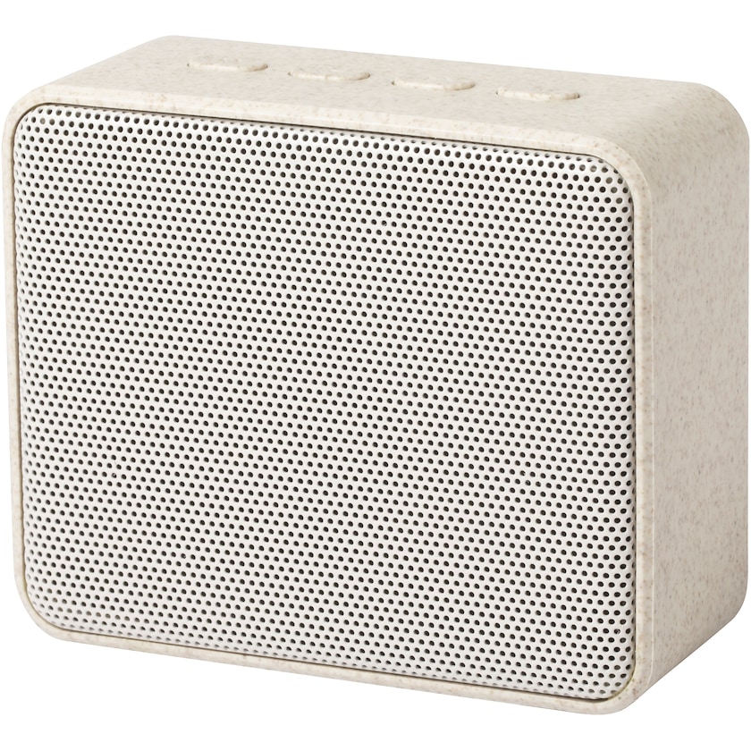 Umweltfreundlicher Lautsprecher aus Kunststoff und Weizenhalm. Der Lautsprecher hat eine Antwortfunktion, USB- und Mikro-SD-Abspielfunktion. USB-Kabel ist im Lieferumfang vorhanden. Der Druck kann in nur zwei Farben geschehen.