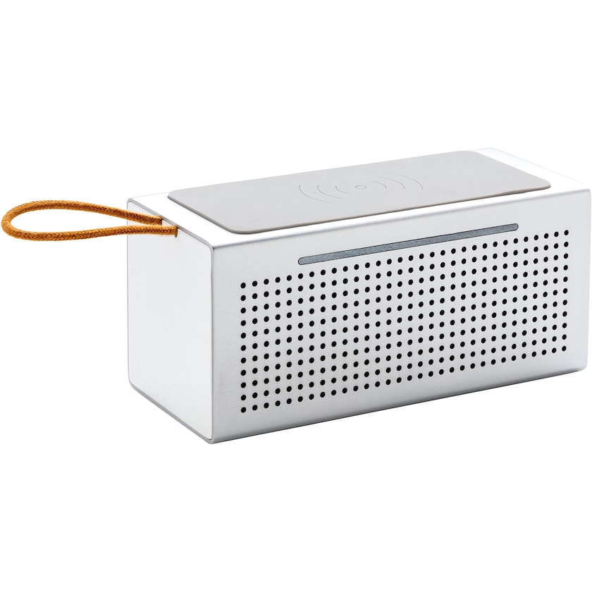 6W Lautsprecher, der auch kabellos Handys aufladen kann. Der Lautsprecher hat einen fantastischen Klang und eine Spieldauer von 8 Stunden. Zum Aufladen den Lautsprecher an eine Stromquelle anschließen. Dank des eingebauten Mikrofons auch als Freisprechanlage geeignet. Registriertes Design®.