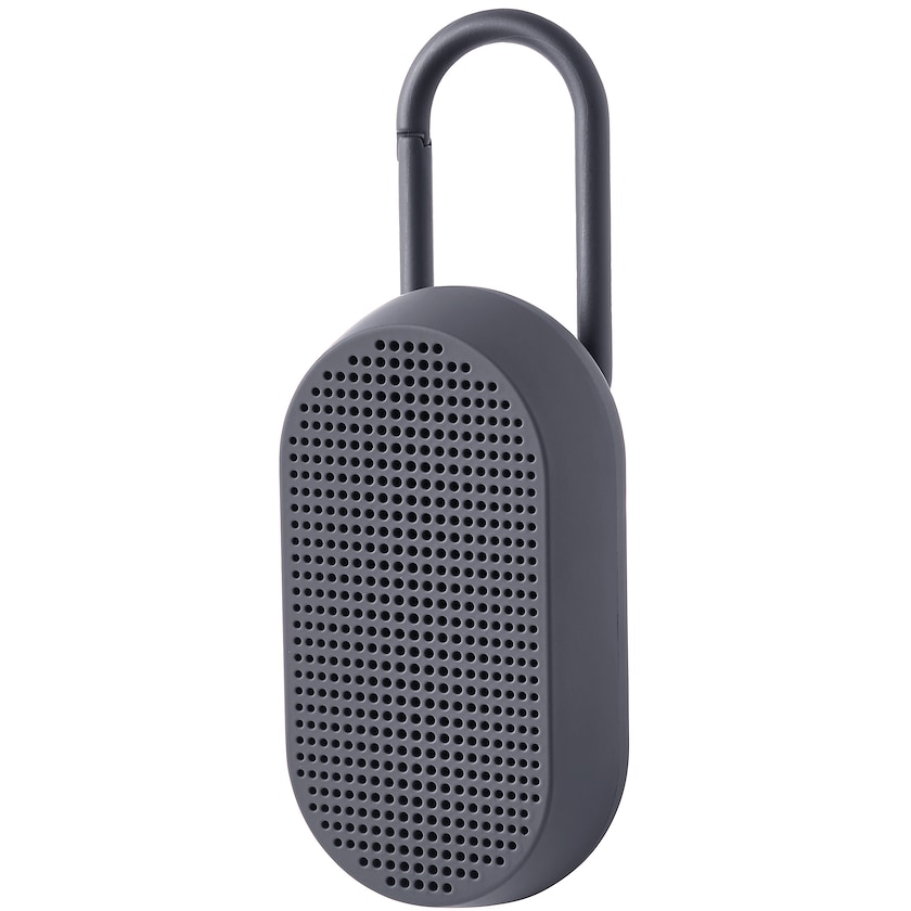 Kompakter Lautsprecher mit integriertem Karabiner. Verwendet Bluetooth 4.2. Dank IPX4-Wasserbeständigkeit auch im Freien einsetzbar. Kann mithilfe der TWS-Technologie gekoppelt werden. Lädt sich über den USB-C-Anschluss in 2 Stunden auf und hat eine Spielzeit von 5 Stunden. Ladekabel im Lieferumfang enthalten.