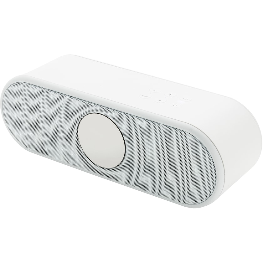 Bluetooth-Stereolautsprecher Lautsprecher mit 6 Knöpfen für: Lautstärke +/- , entgegennehmen von Anrufen, an/aus und Basseinstellen. Dank der Batterie kann man bis zu 10 Stunden Musik spielen. Funktioniert per Bluetooth und mit normalem Audio-Kabel.