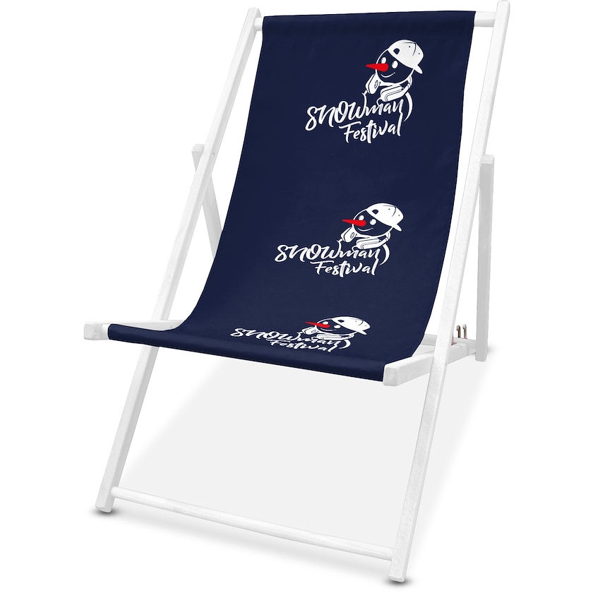Sonnenstuhl ausgerüstet für kälteres Klima. Perfekt für Skigebiete! Die Holzdetails des Liegestuhls sind schnee- und frostbeständig. Wählen Sie aus sieben verschiedenen Holzfarben. Der Stoff ist mit 4-farbigem Fotodruck bedruckbar.