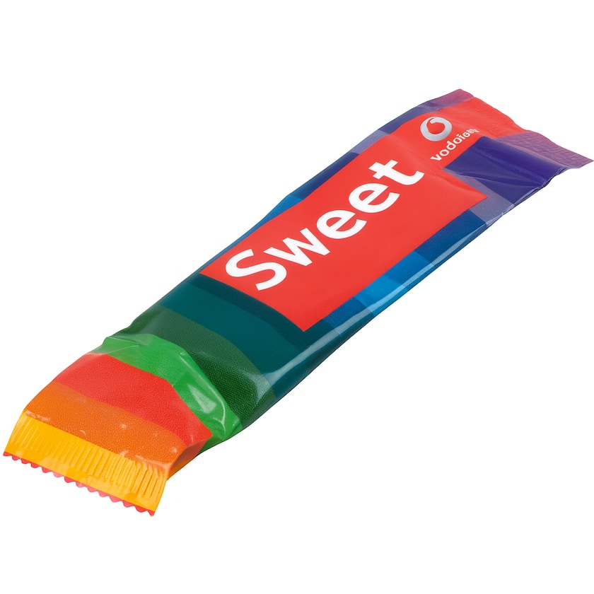 13 Gramm Lollie aus Fairtrade-zertifiziertem und ökologischem hergestelltem Zucker. Die Farbe des Lollie wird aus natürlichen Zutaten hergestellt. Die gesamte Flowpack-Verpackung wird nach Kundenwunsch bedruckt. Die Mindestbestellmenge pro Geschmack ist 5000 Stück. Ein Fairtrade-Lollie mit viel Platz für Werbung!