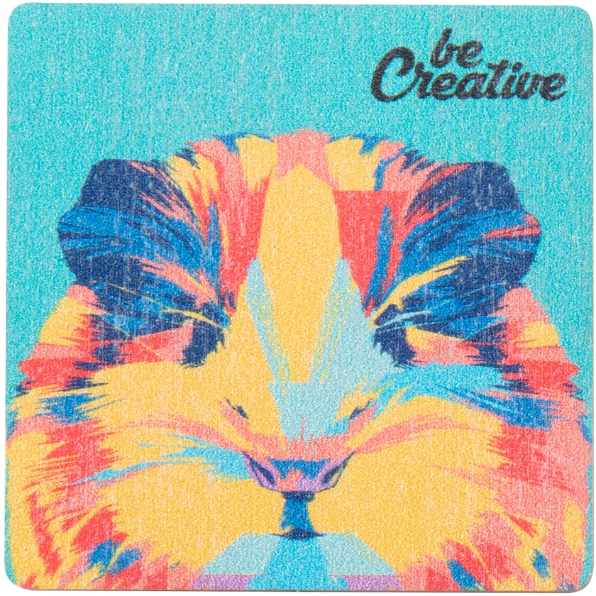 Quadratischer Kühlschrankmagnet aus echtem Holz. Die ganze Oberfläche wird im 4-Farb-Fotodruck bedruckt.
