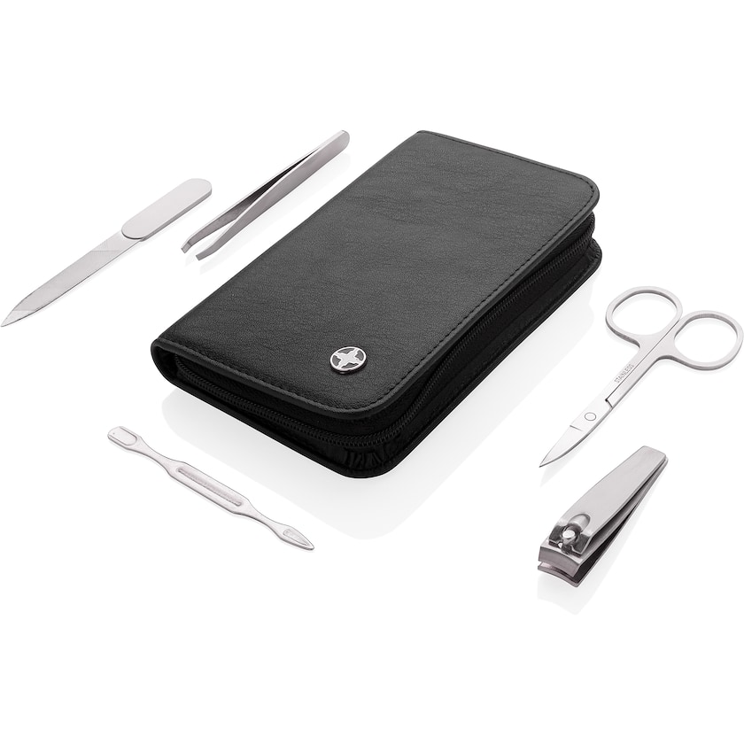 Exklusives Maniküre-Set von Swiss Peak. Das Set besteht aus 5 Teilen, die allesamt aus Edelstahl gefertigt sind. Das Druckmotiv wird per Gravur auf dem Aufbewahrungs-Etui aus Kunstleder angebracht.