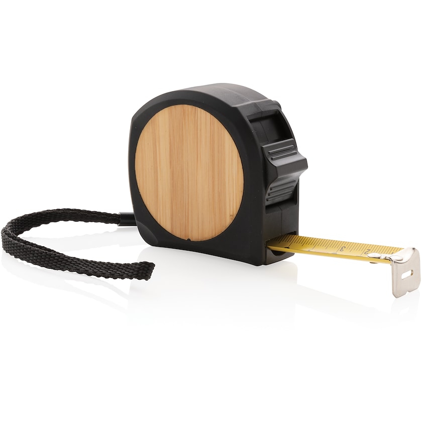 5-Meter-Maßband mit geschmackvollem Detail aus echtem Bambus. Das Maßband hat einen Stoppknopf und wird in einer schönen Presentbox geliefert. Die Personalisierung kann wahlweise mit Druck- oder Lasergravur erfolgen.