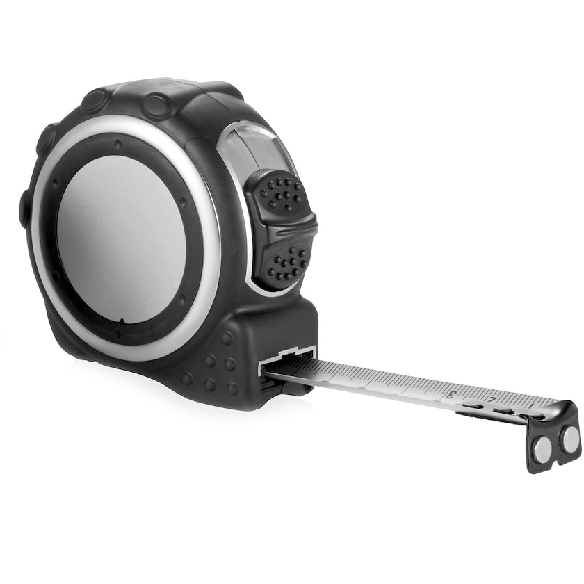 Maßband in futuristischem Design mit gummiertem Gehäuse. Cross hat einen Gürtelclip auf der Rückseite. Das Modell ist auch mit 3-Meter Maßband erhältlich.