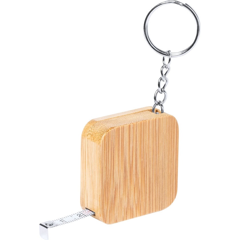 1 Meter Maßband bedrucken oder gravieren lassen. Das Maßband ist aus Bambus und wird mit einem Schlüsselring geliefert.