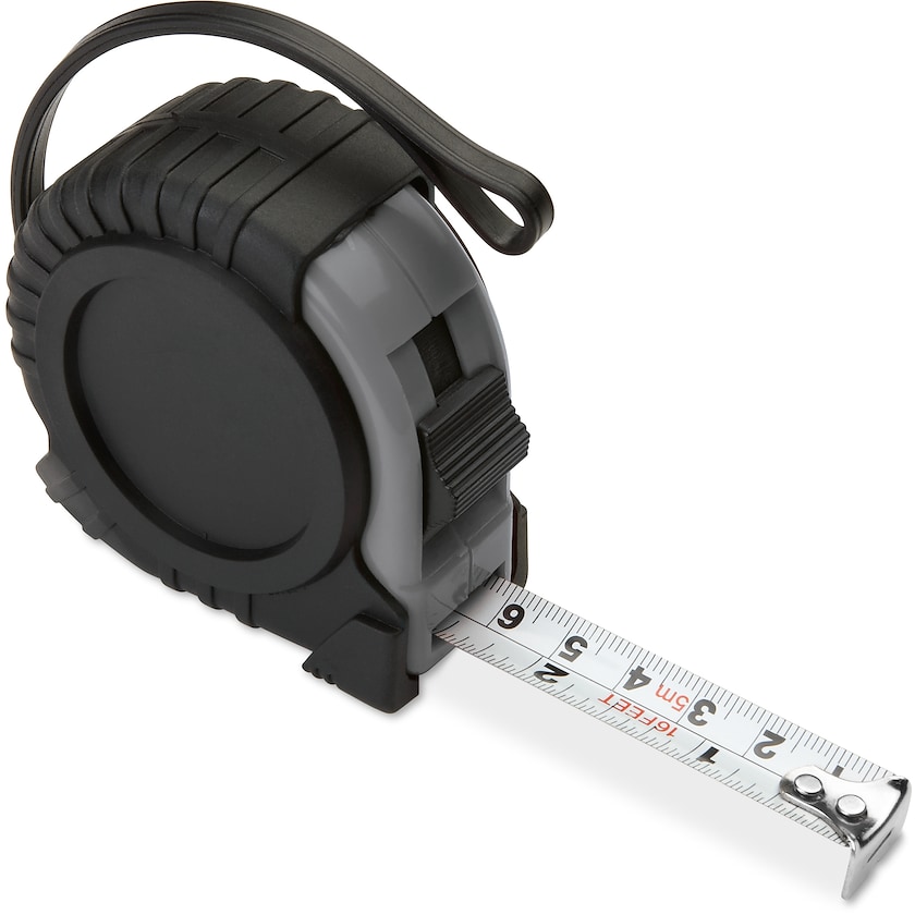 Maßband mit 4-Farbfotodruck. Der Druck wird im runden Kreis des Maßbandes platziert und durch eine Epoxy-Oberfläche geschützt. Das Maßband hat ein Schlaufe und einen Metallclip auf der Rückseite.