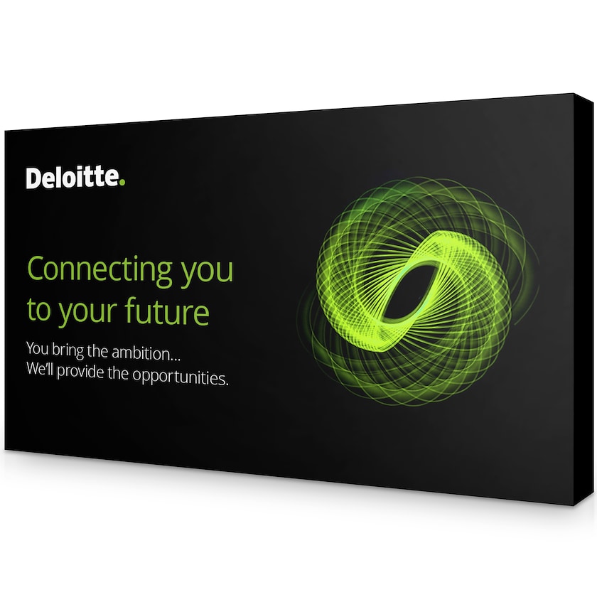 Extragroße Messewandmit geraden Linien. Trotz seiner Größe wiegt das System sehr wenig und kann im Handumdrehen von einer Person aufgebaut werden. Der Stoff wird mit Klettband befestigt. Die Lieferung erfolgt in einer praktischen Aufbewahrungstasche mit Rädern.