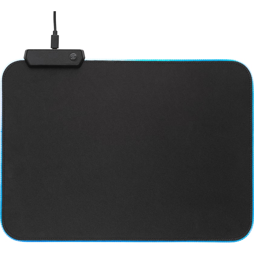 Großes Mauspad, speziell für Spiele entwickelt. Die Unterseite ist gummiert, sodass das Mauspad stets fest auf der Oberfläche aufliegt. Ausgestattet mit einer Randbeleuchtung mit 15 verschiedenen Lichtmodi.