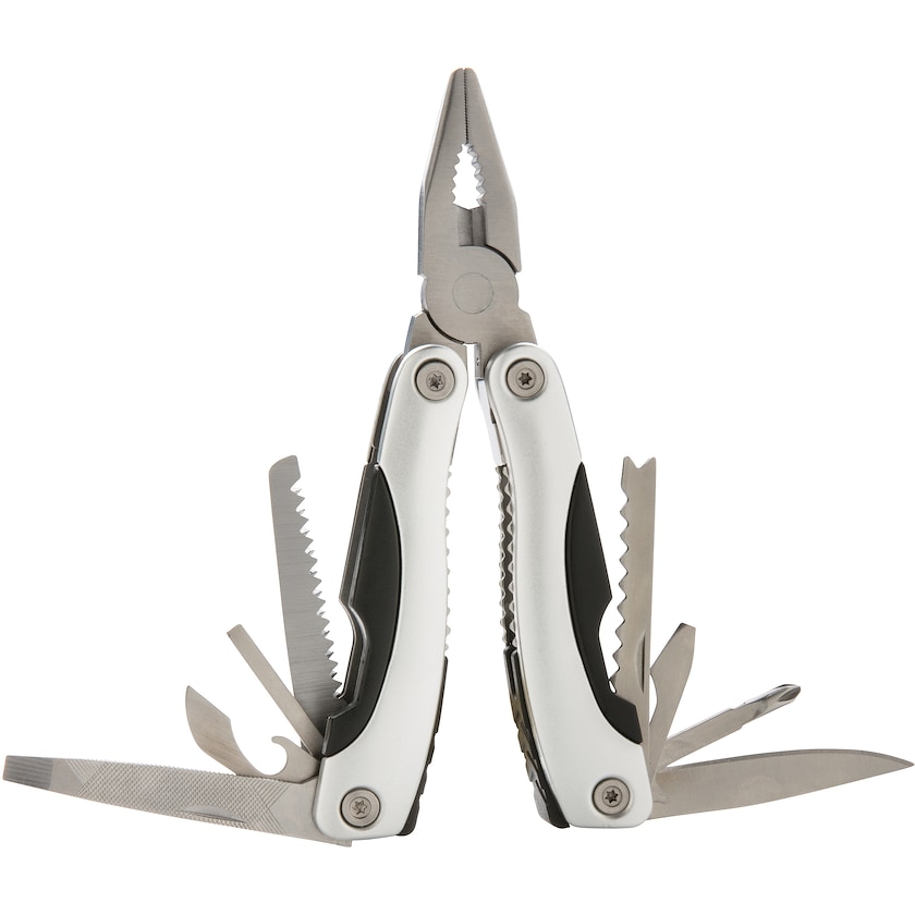 Multiwerkzeug aus Aluminium mit 14 Funktionen. Die Lieferung erfolgt in einem praktischen Etui.