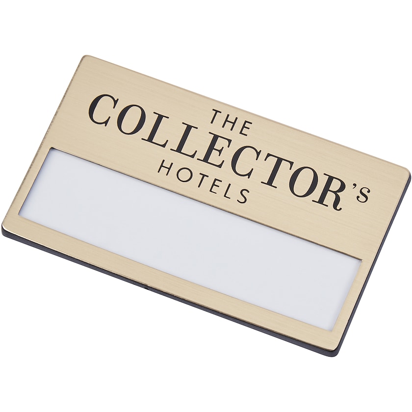 Kleines Namensschild mit großer Druckfläche. In vielen schönen Farben erhältlich. Wird mit einer Sicherheitsnadel an der Kleidung befestigt.