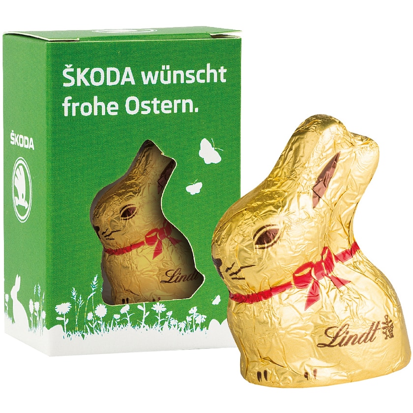 Pappkarton mit einem Schokoladenosterhase von Lindt. Der Pappkarton wird nach Ihren Wünschen bedruckt. Laden Sie die Druckvorlage herunter und werden Sie kreativ!
