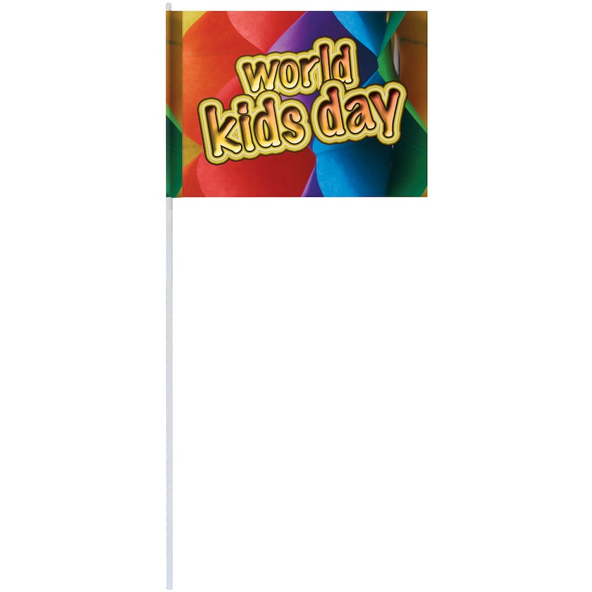 Große Papierfahne mit eigenem Druck. Die Fahne ist aus 135 g/ m² mattlaminiertem Offsetpapier gefertigt und an einem circa 50 cm langen Plastikstab befestigt. Die Stange besteht zu 70% aus recyceltem Material. Die Fahne wird auf beiden Seiten bedruckt und kann unterschiedliche Motive haben. Lieferung erfolgt in Bündeln per 25 Stück und kann ab 1000 Stück bestellt werden.