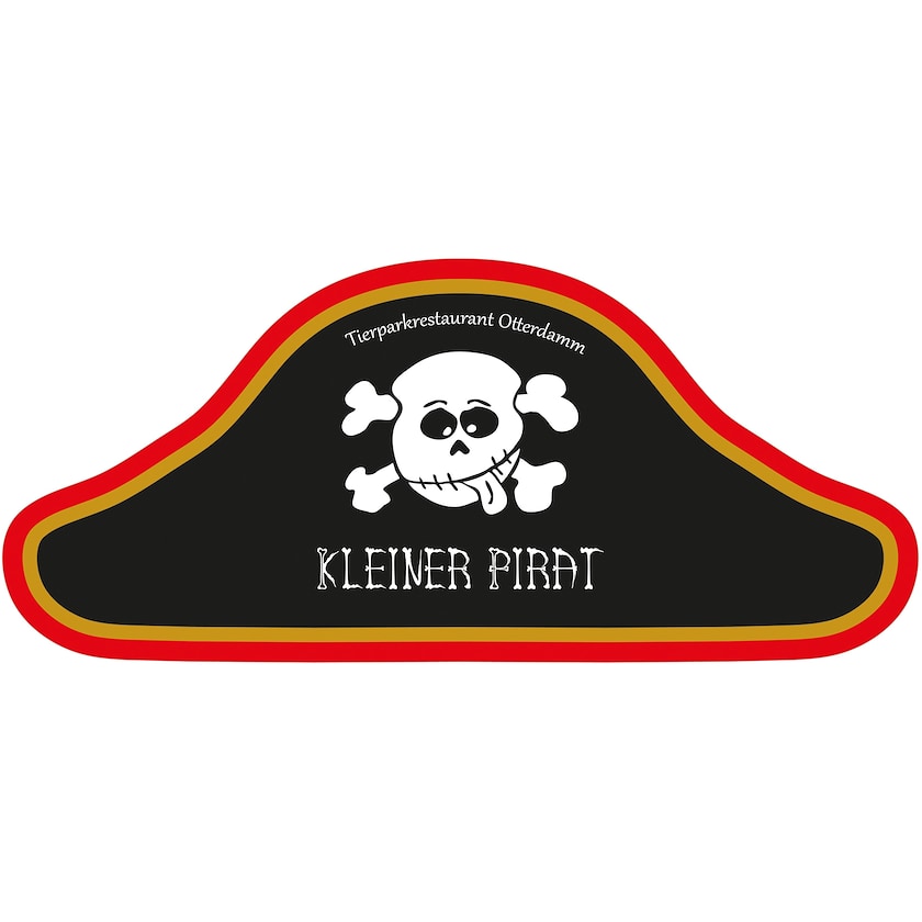 Piratenhut aus recyceltem Papier. Das Papier besteht aus 95 % recyceltem Material. Der Hut wird ausgestanzt geliefert, um ihn später auszufalten. Geliefert wird mit einem Baumwollband. Der Druck erfolgt auf der gesamten Außenfläche.